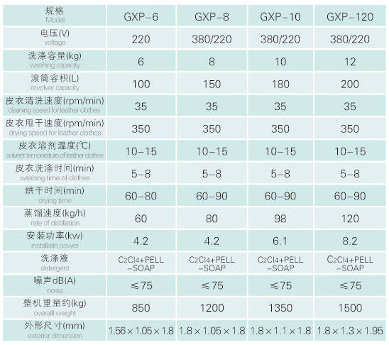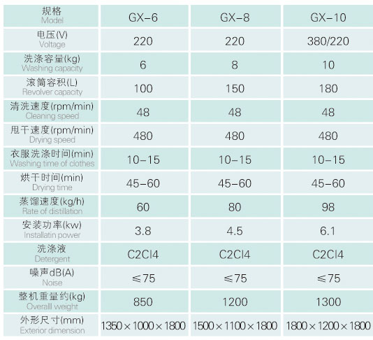 全自動干洗機技術參數